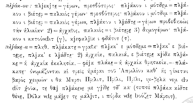 “Në Athinë, ku dikur përbënin shumicën e popullsisë, ata banojnë veçanërisht në të ashtuquajturën Plaka ose Qyteti i Vjetër (nga shqipja: pljak – i vjetër, femërore: pljaka).”